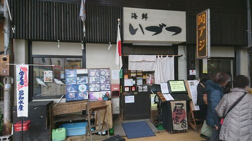 別府のデパート「トキハ」の地下にあるフードコートの 「佐賀関食堂」へ かなりの席数がある広いフードコートです 別府冷麺の「六盛」やとり天発祥の「東洋軒」も入っています 関の海鮮箱 1,200円(税込)を注文 彩豊かな野菜とお刺身のお重です お刺身はブ…