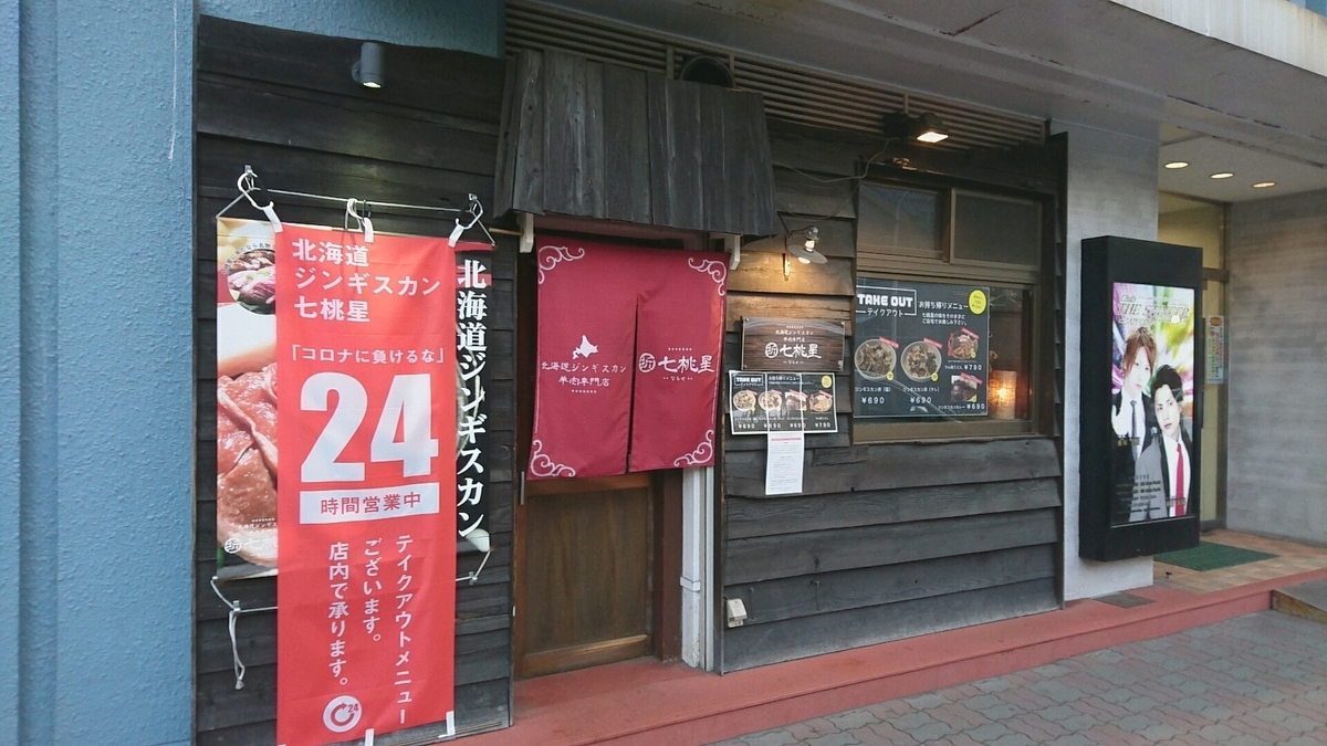 2020-05-24 北海道ジンギスカン 羊肉専門店 七桃星(なもせ)/ 札幌市中央区南6条西6丁目 第6旭観光ビル 1F 札幌 すすきの グルメ 食 すすきののジンギスカン店七桃星のテイクアウトを利用 24H営業とお知らせ出てました ジンギスカン丼(タレ)を注文 690円(税込) かなりお安いと思います ご飯とジンギスカンはセパレート せっかくなので丼に 程良く焼かれたお肉に ピーマン・玉ねぎ・長ネギ・キャベツ お肉は羊独特の味はしましたが 焼き加減が良いのか、比較的柔らかく美味しいお肉でした ご馳走様でした 北海道ジンギスカン 羊肉専門店 七桃星 (なもせ) - 東本願寺前/ジンギスカン [食べログ]