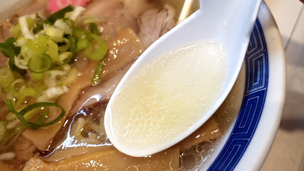 ガツンとした塩味と雑味のない鶏ガラスープのバランスの取れたスープ