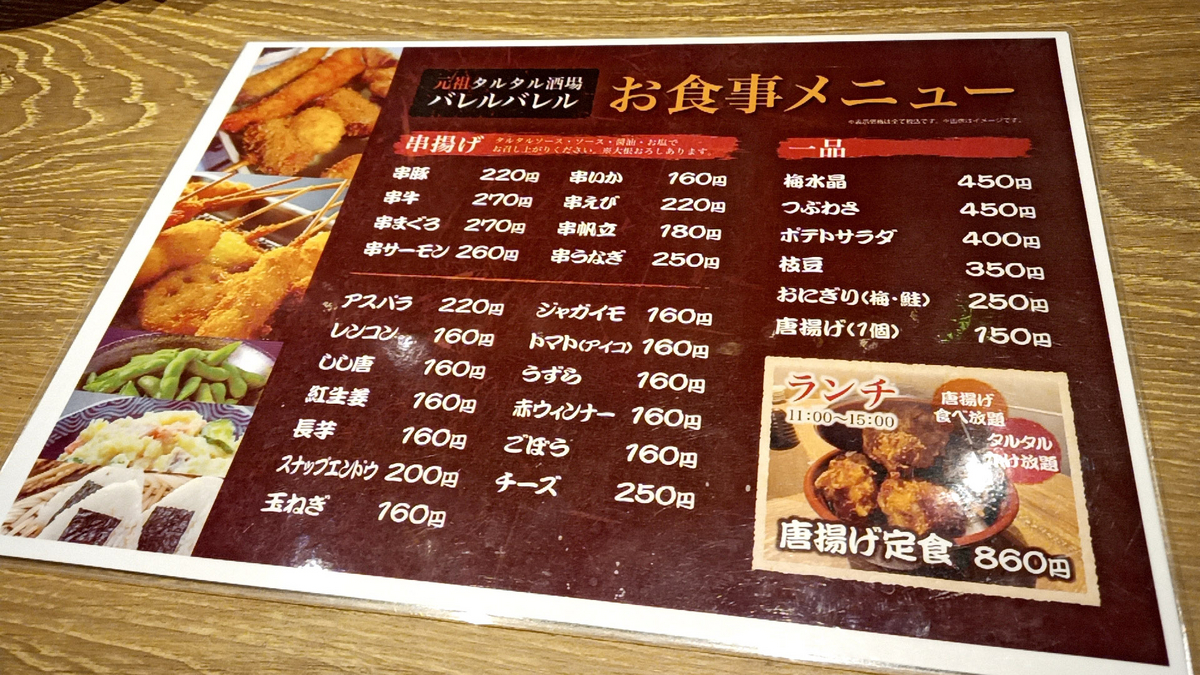 狸小路2丁目、狸COMICHIにある「元祖タルタル酒場 バレルバレル」でランチ