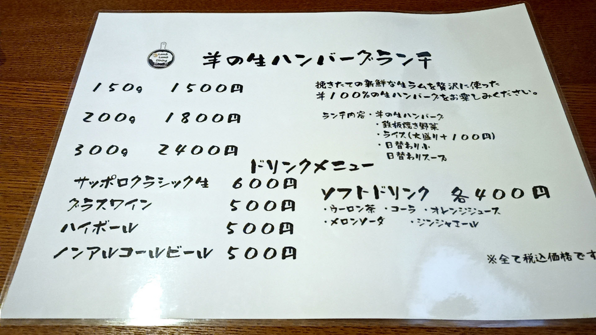 羊のハンバーグランチ 200gを注文 1,800円(税込)