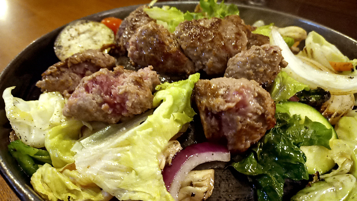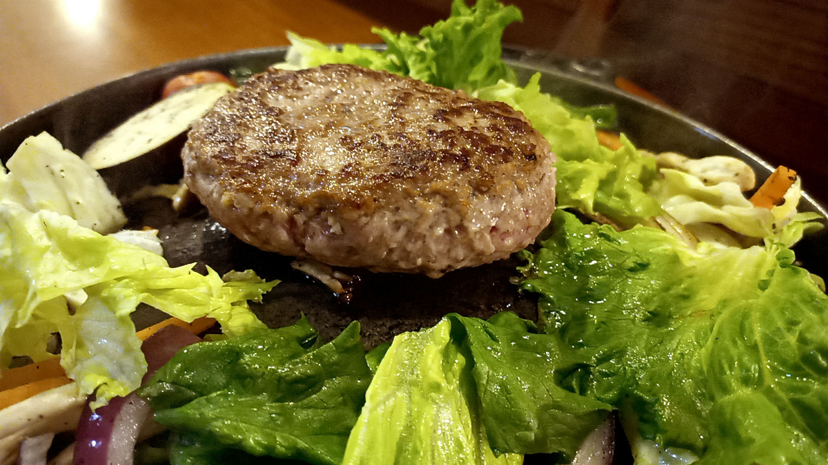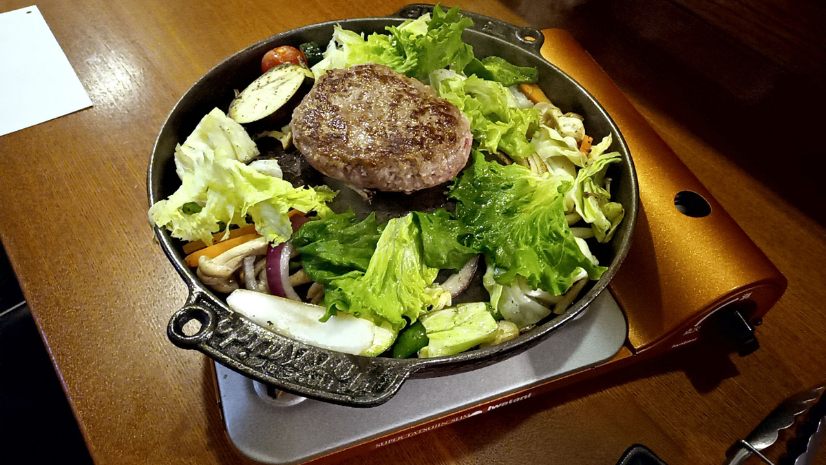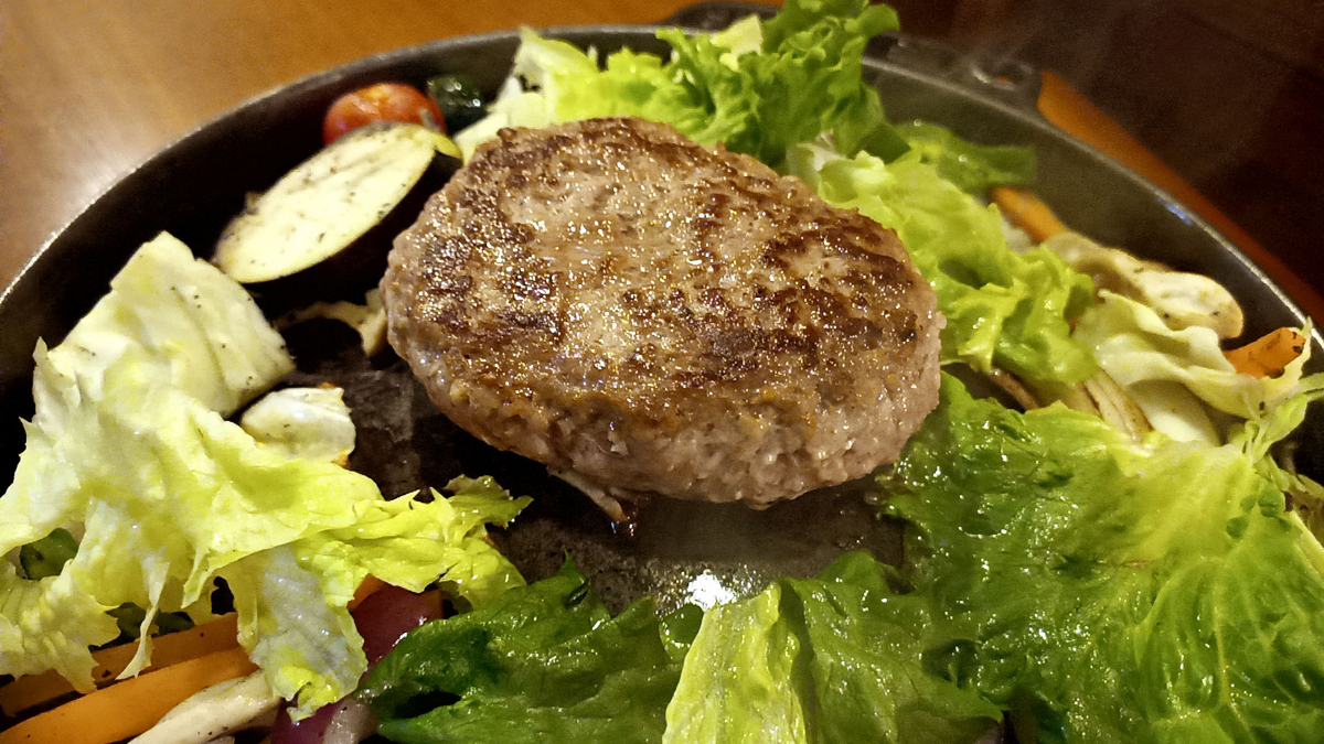 その後すぐハンバーグがたくさんの野菜と共に到着