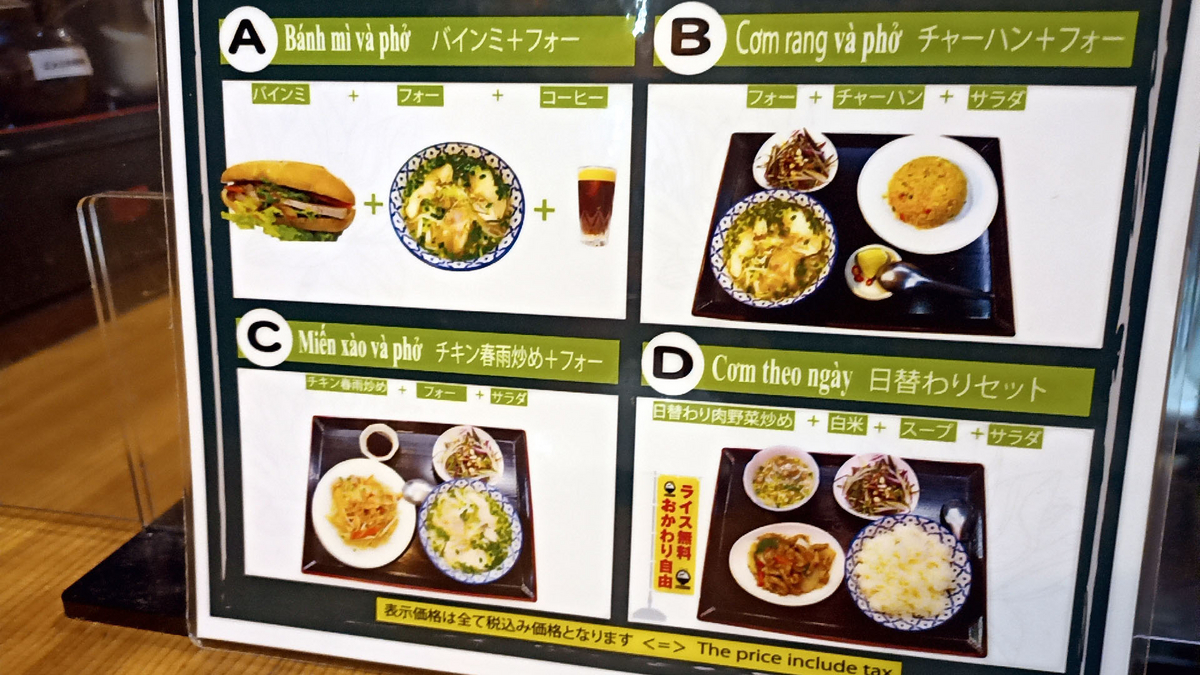 店の名前が付いたセットとA~Dの4種のランチメニュー
